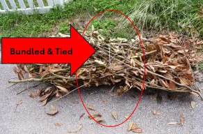 Residents may leave up to six bags of yard waste OR six bundles (or a combination of bags/bundles) at the curb each week.